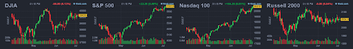 There are four charts below. The first is the DOW. It is the one we hear most about in the news. It is the most representative of the broader market and economy. It includes the aforementioned industrials, financials and health care, consumer stocks, etc., and holds very little technology stocks. As of writing, it is up only just over 4% this year. The fourth chart below is the Russell, which represents the small to mid-size companies. It is up less than a half percent year to date.