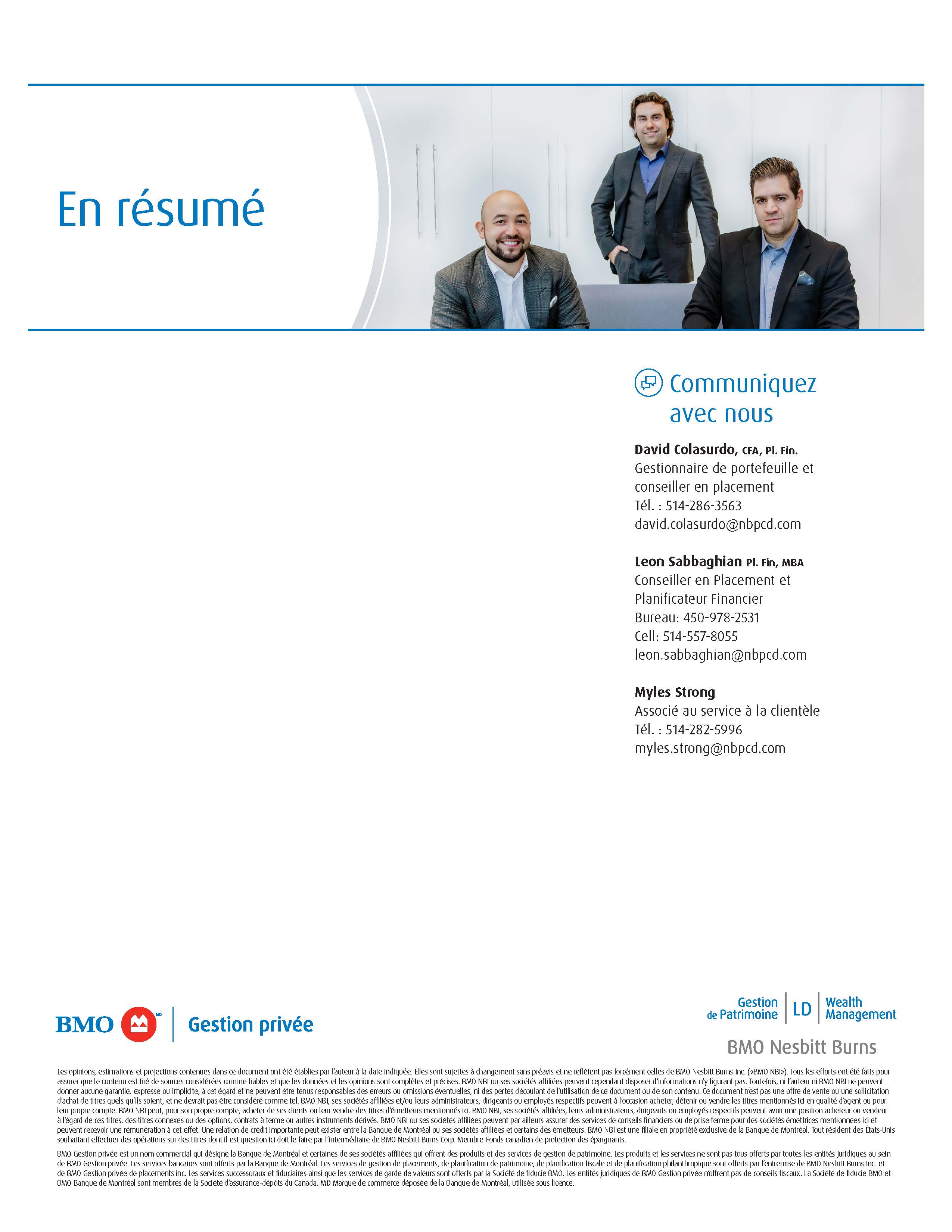 • Notre équipe de gestion de patrimoine élargie